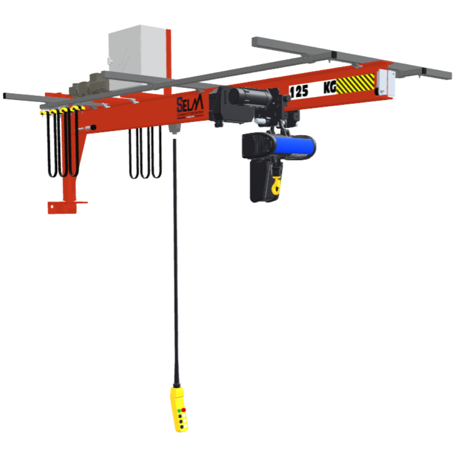 Disponible en capacités de 150 kg à 4000 kg et en portées de 2 m à 7 m, elle est livrée avec des équerres de fixation standards.